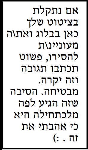 ![]() this is my own postsecret אני 23. המספר לא מגדיר אותי אבל זה הדבר היחיד שאני יודעת כרגע בתהליכים. הכיוון- חיובי. :) ![]() ![]() always be on the lookout for the presence of wonder neuroplasticity- the human brain is capable of change live out loud, own up to who you are and say yes חיה ותן לחיות ![]() ![]() |