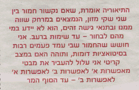 משם אצתי לחנות ספרים בעיניים נוצצות ומלאות תאווה (לא, לא בכוונה להציץ בספרי סקס), שאלתי את המוכר אם הספר "מוצא המידות הטובות" מצוי בחנות, לאחר תקתוקים קצרים במחשב הוא הכריז: "אין ספר כזה!", באמא'שך??. טוב, לא אמרתי לו את זה, אבל זו כבר הפעם השנייה שהוא מסיק - הספר לא נמצא בחנות = הספר לא קיים!. לוגיקה משונה יש לבחור.