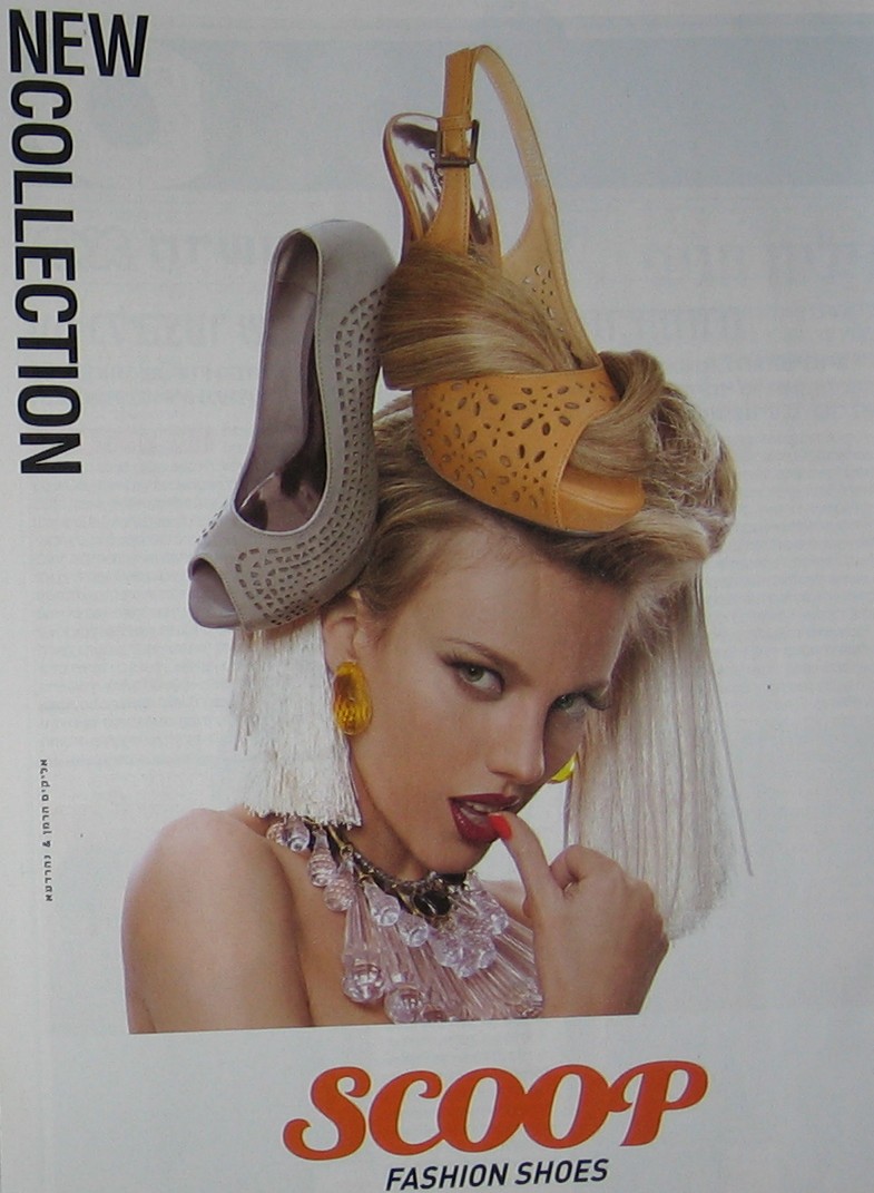 בפרסומת אחת רואים בחורות שיש להן נעלים על הראש.