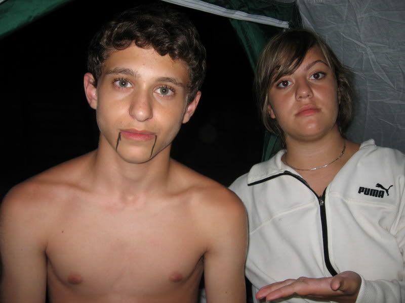 הסקסי שהציל אותנו מהשיכור חולה הנפש...ב5,4 וחצי ככה לפנות בוקר אנחנו משחקים מחוץ לאוהל פתאום בא אחד שיכור שואל שאלות מאיים לדקור אם לא נסגור את האוהל אומר לי שאני זונה ולמרקו שהוא נמושה ואז הוא עושה למרקו "מה אתה עושה פה?!" ומרקו הפחדן הזה..:"אני איתן!" ומצביע עלינו!!!חחחח איזה גובלין... וגם שמתי לו שחור בעיניים ובבוקר הוא אמר בקול נשי כזה בלי כוונה:"ירד לי האיפור??" חחחחחחחחחחחחחחח