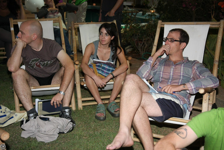 בזמן שאני בלסתי שאר הבלוגרים הלכו למסאז'ים וכאלה. אני לא עשיתי בגלל הפוביה שלי מנגיעות [למי שלא יודע- יש לי פוביה מנגיעות, יש כזה דבר בחיי! יש לזה אפילו שם אבל ברח לי], וגם בגלל שזה היה דורש ממני להיות עם בגד ים ורוב האנשים שם יכולים להיות אמא ואבא שלי [בגיל] או אחי הגדולים ממני ב8++ שנים אז, העדפתי להשאר עם הבגדים. אחרי שזמן המזון נגמר (או שעת המסאז'ים איך שתרצו) התחיל החלק שבשבילו בעצם הגענו לכאן[!] הפרק הרשאון של השרדות 3!!!