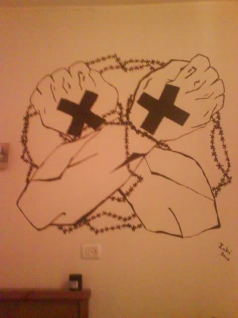 הסמל של סטרייט אדג' שציירתי לטופו על הקיר! ובאותו יום אכלנו בפעם הראשונה בחיינו טופו ביחד!