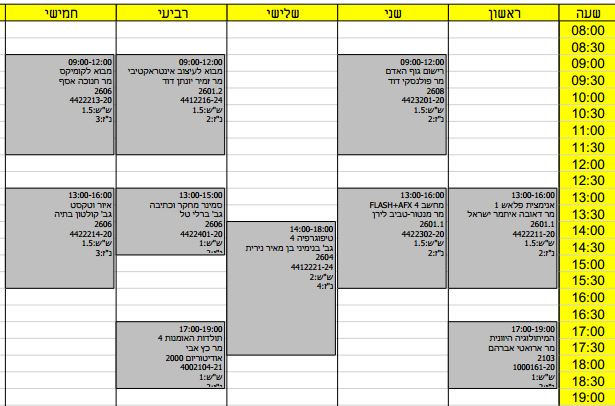 והזיזו אותו לאחד. עכשיו זה עוד יום תקוע שאני מתחילה באחד ומסיימת בשלוש פשוט מבאס שאין אפילו יום קצר אחד בגלל שהקורסים תקועים באמצע היום במקום להתחיל מהבוקר. מוזר לי שיש רק שבעה קורסים, בסמסטר הקודם היו 10