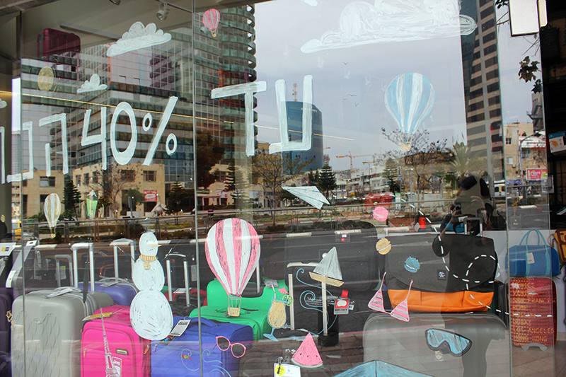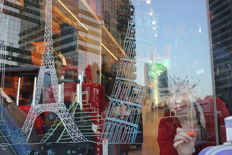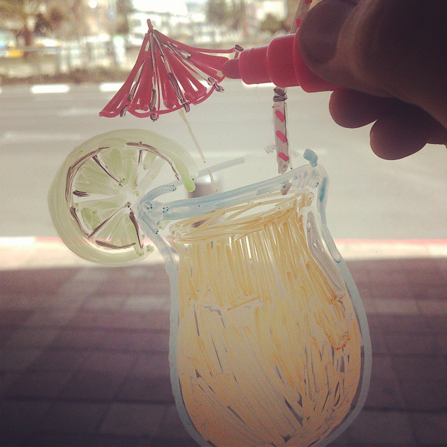 המנהל בעבודה רצה שקשקש על חלון הראווה בחנות אז אני ונועמי, חברה מהכיתה שהיא גם אישתו ציירנו בכיף בטושים מיוחדים