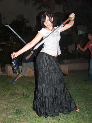 נערכים קרבות סיף מאולתרים על חרבות קרטון.