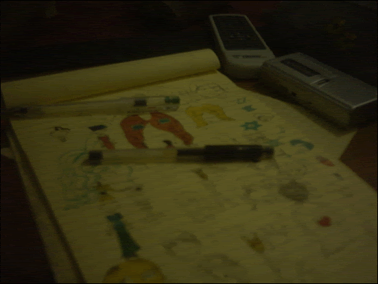 נעימאוד. אלה הבלוק שלי, הטייפ רקורדר, השלט של הדויד, העט שלי, והעט הדולף. בקבוק בנחל. מרנין.