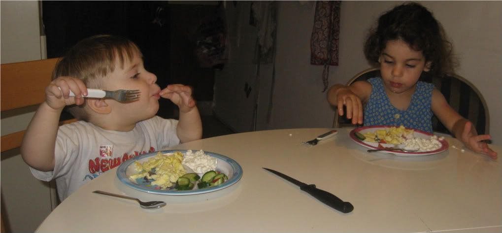 חביתה, קוטג' ועגבניה (ליעל) ומלפפון (לאוּרי), אוּרי קיבל מזלג עם ידידיו הטלטביז והשמחה היתה רבה.