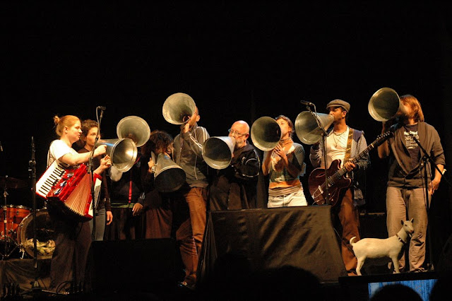 היתה ערימה של אנשים צעירים וגם צעירים פחות, שעלו על הבמה עם כמה כלי נגינה, עז מפלסטיק ומלא משפכי פח, והתחילו להמהם ולבפבפ ולהקריא מתוך דף הנחיות לסיור בירושלים וקצת לעשות קולות וקצת לנגן, והיו מקפיצים ומגניבים לגמרי. הבחור הצבאי האחר צילם, אבל טרם הגיעו התמונות המטושטשות למערכת.