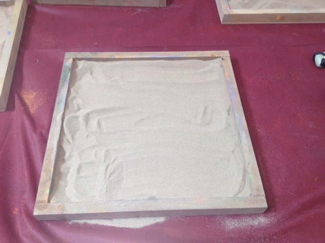 ככה התחלנו. מגש חול נקי, והרבה צלוחיות מלאות חול צבעוני...ואצבעות.