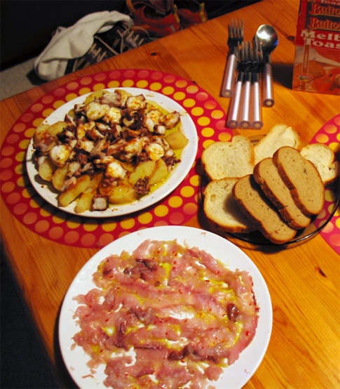 ביום שישי בכלל לא יצאתי מהטרנינג מרוב השקעה באומנות. זה לא אומר שלא היה חזיילך ושלא אכלנו במהממות. תיקולי1 והפרעסר הביאו דברים טובים מהשוק, ואכלנו תמנון עם תפוחי אדמה והרבה שמן זית אה-לה-מיגל, וקרפצ'יו דג.