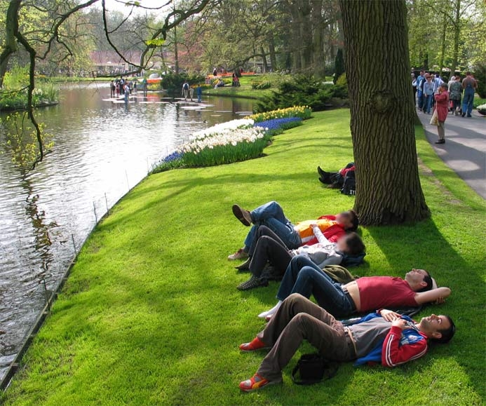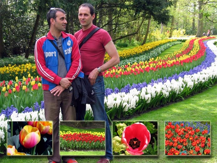 זה שחזרנו מאוחר לא אמר שלא עשינו תוכניות גרנדיוזיות גם למחרת – יום רביעי. אז נכון שאחרי שהלכנו לישון בשתיים היה ברור שלא נהיה רחוצים ואכולים בעשר בחוץ, ונכון שהפעם שוב היינו בהרכב מלא ולא היה למי להוכיח, אבל בסביבות 13:00 כבר היינו על הרכבת לליידן ((Leiden בדרכנו לגני קוקנהוף (keukenhof). בדיוק עכשיו, באביב, יש פריחה יפהפייה של מרבדי פרחים בכל מיני צבעים - בעיקר צבעונים (טוליפים) ונרקיסים. התחלנו בסיבובון רגלי בליידן הסטודנטיאלית והנעימה (כי צריך לאכול משהו, לא?) ולקחנו אוטובוס לפארק.