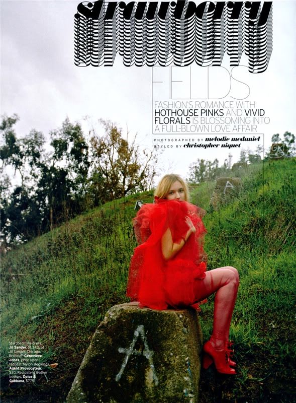 במגזין ELLE שקיבלתי מדודה שלי נתקלתי בהפקת אופנה קסומה עם טייטל נפלא (שדות תותים לנצח...).