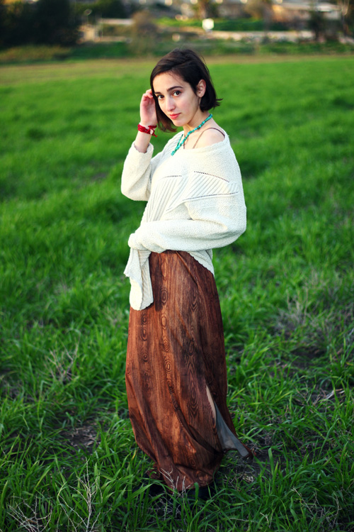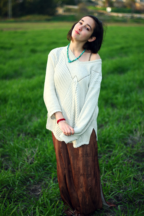 ביום שבת האחרון יצא לי לקפוץ לאוסף ולאסוף לי כמה פריטים מדהימים, אחד מהם הוא זוג הנעליים החומות שלבשתי בצילומים. בנוסף מצאתי אלבום של ביורק (שממש עניין אותי לשמוע אותה) וביטלס, ג'קט אפרסקי עם צווארון צמרירי וזוג סנדלים שחור, אחת הקניות הטובות (והיחידות) שלי בזמן האחרון.