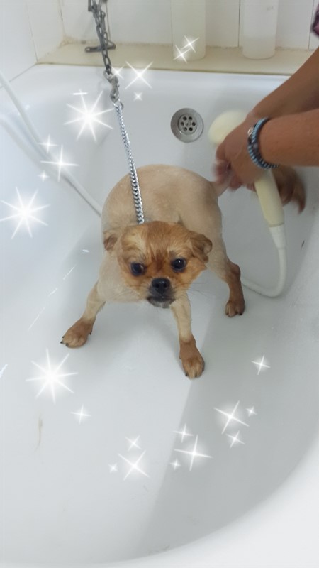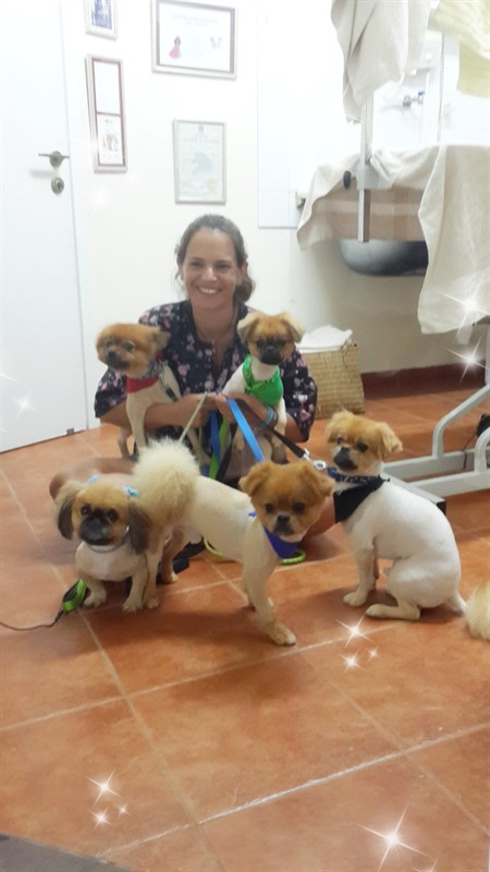 בשבוע שעבר חזרתי עם אמא מאימון ביום רביעי,אחרי יום ארוך בבסיס וחום אימים הגענו הביתה וחשכו עינינו.הכלבים שלנו נכנסנו בצמח ארור שהסתבך להם בפרווה ועשה בלגן וקשרים כ"כ איומים שאי אפשר היה לפתוח.וכמובן שלי נמאס כבר לשבת ולהבריש ואז למחרת כל העבודה הולכת לאלף עזאזל כשהם משתוללים בצמחיה עוד פעם וחוזרים עם קשרים,באותו רגע התקשרנו לספרית כלבים שאמא קיבלה עליה המלצות חמות והתייצבנו אצלה עם חמשת הפונפונים המפונפנים שלנו,ובזה אחר זה היא סיפרה אותם ביסודיות,הברישה,גזרה,קילחה,ולבסוף כמובן-בושם וקישוט חמוד