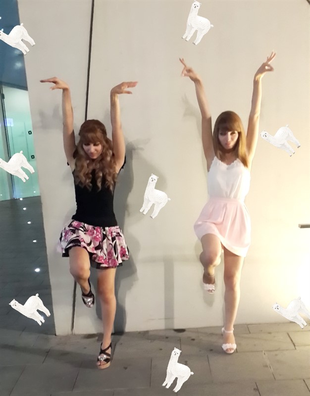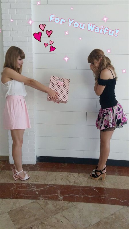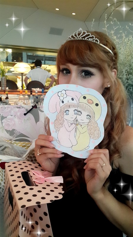 הברכה שהכנתי לג'ורג'י~היא ואני לבושות בקיגורומי של קירוי טורי ומיי מלודי
