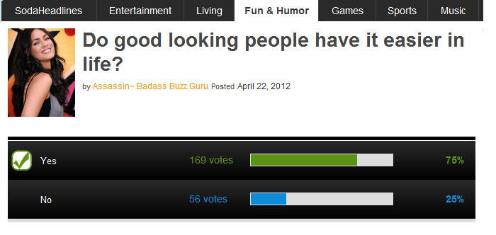 זו רק אני או שכל היפים ענו "לא" וכל המכוערים ענו "כן?"