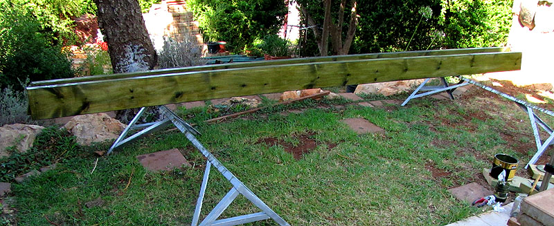 אחרי שהשלמתי את שלב א' של הכנת הקיר, ניגשתי עם רשימת הקורות לסוחרי העצים המקומיים. במטרה לקנות עץ מוקצע ומשומר (כזה שעבר טיפול נגד חרקים).