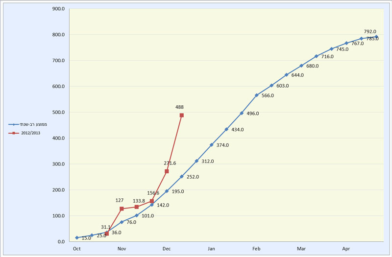 אז מתחילת השנה, ירדו אצלנו כבר 488 מ"מ שהם 194% מהממוצע הרב שנתי.