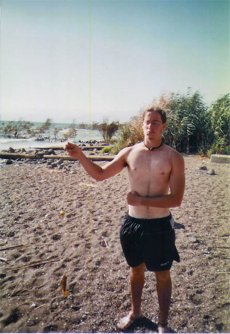 אורלנדו משוויץ בדג שתפס עם חוט דיג וכדור לחם. בהתחשב בגלים-מרשים ביותר ללא ספק.