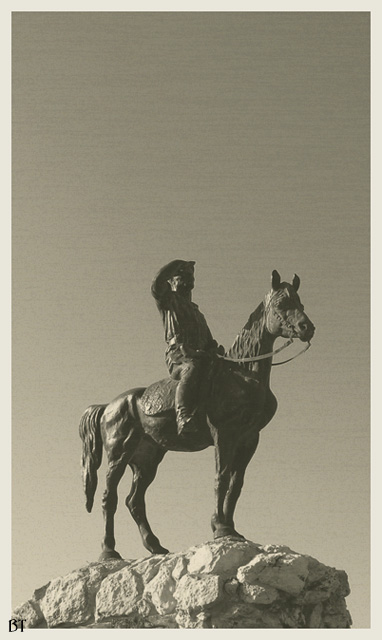 לא ינום ולא ישן שומר ישראל, וגם לא אני. אל תסמכו אל אף אחד אף פעם. אני לא הולך לפספס שום הזדמנות מעתה ואילך. התמונה  צולמה בדיגיטלית לפני חודש בערך, בגבעות שיח' אבריק שליד קריית טבעון. האיש הרכוב על הפסל הוא "שומר ישראל" הלא הוא אלכסנדר זייד הרכוב על סוסו הנאמן. הסוס שיש לי הוא הראש, נקווה שיקח אותי למקומות רחוקים יותר מסוס הברונזה של זייד.