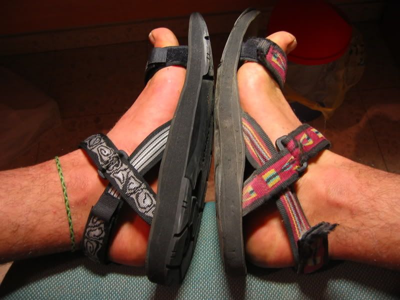 היסטורית סנדליים הארוכה במהלך ימי התיכון שלי, כוללת בפרוטוקולים לקיחת זוג אחד ע"י סולבקים (ששכחתי את הסנדלים על גג המכונית, ונזכרתי בזה שסיימנו לנסוע), 2 זוגות שנקרעו במהלך קפיצה נלהבת בעקבות כדור, זוג נוסף שפשוט איבד באיזשהוא שלב את הצורה שלו, והזוג האחרון סיימו (כמעט) רישמית את חייהם היום, אחרי יותר משנה של שימוש מסיבי.