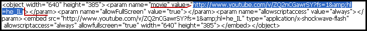 (בלחיצה על הכפתור "שתף" מתחת לוידיאו מתקבל הקוד הדרוש)