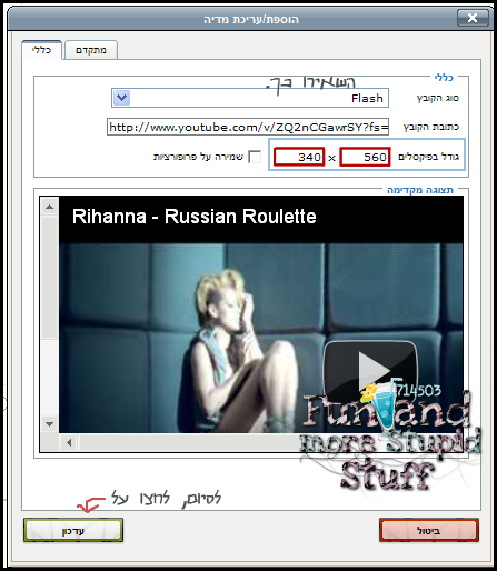 הדביקו את הקוד של הסרטון, ולחצו על "הוספה".