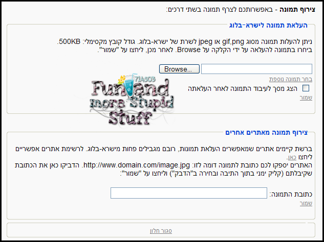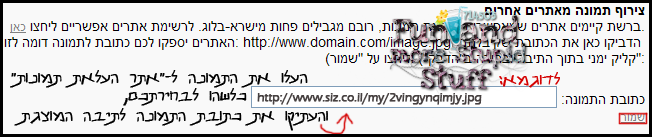 בכדי לצרף תמונה מאתרים אחרים, פעלו לפי התמונה: