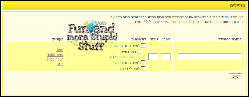 לחצו על הפעולה "העלה סמיילי" , בחרו את הסמיילי שלכם, אשרו וסמנו את התצוגה המתאימה לכם, ולאחר מכן,