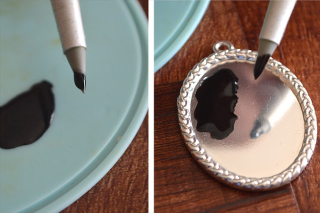 צובעים את התליון בצבע בעזרת המכחול (פה המכחול מסיליקון אבל אפשר גם מכחול רגיל)