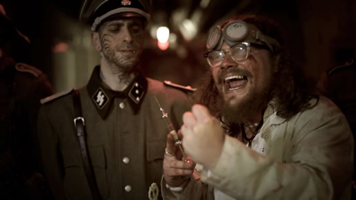 אבל אחד הרגעים הכי זכורים בשבילי באותו יום היה כשמתישהו נכנסו לחדר חבורה של חיילים במדי נאצים עם רובים, שזרקו לכל אחד מאיתנו שק בד ואמרו לנו לכסות איתו את הפנים. וככה יצא לי, בתור דור שלישי לשואה, לעמוד עם ידיים מורמות ושק על הראש מול אנשים במדי נאצים שמכוונים לכיווני רובה ומדברים במבטא גרמני. זו הייתה אחת החוויות הסוריאליסטיות בחיי, כי זה לא משהו שציפיתי שאחווה אי פעם. עד כמה שידעתי שהכל הצגה, הסימבוליקה הנאצית היא כל כך חזקה ומעוררת רגשות, ככה שבאמת עלה לי לראש באותו רגע "מעניין מה הם היו חושבים אם היו יודעים שיש כאן שני יהודים". בסוף הגיע שחקן חייל נוסף שירה בנאצים והציל אותנו.