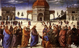 פייטו פרוג'ינו על הקפלה ברומא – ישוע מוסר את המפתחות לפטרוס 1481