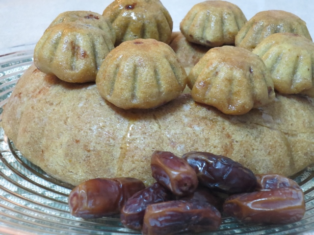 לקרוץ כדורים לא גדולים למלא בכפית ממרח תמרים, מעט אגוזי, לסגור כמו כובה
