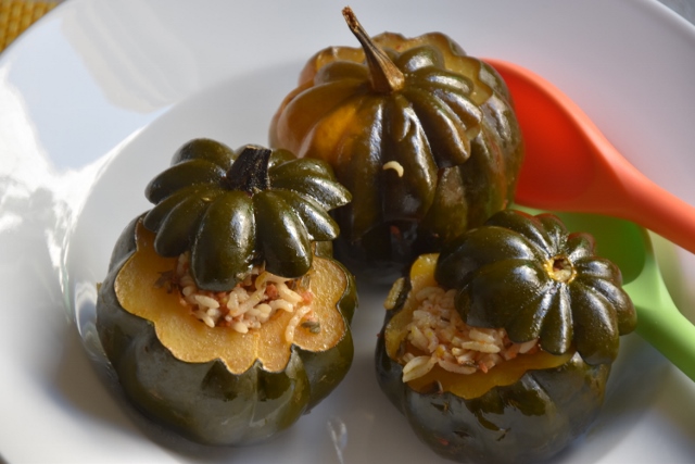 דלעת ערמונים ממולאת באורז בשר - מוגשת כמנה עיקרית או מנת ביניים