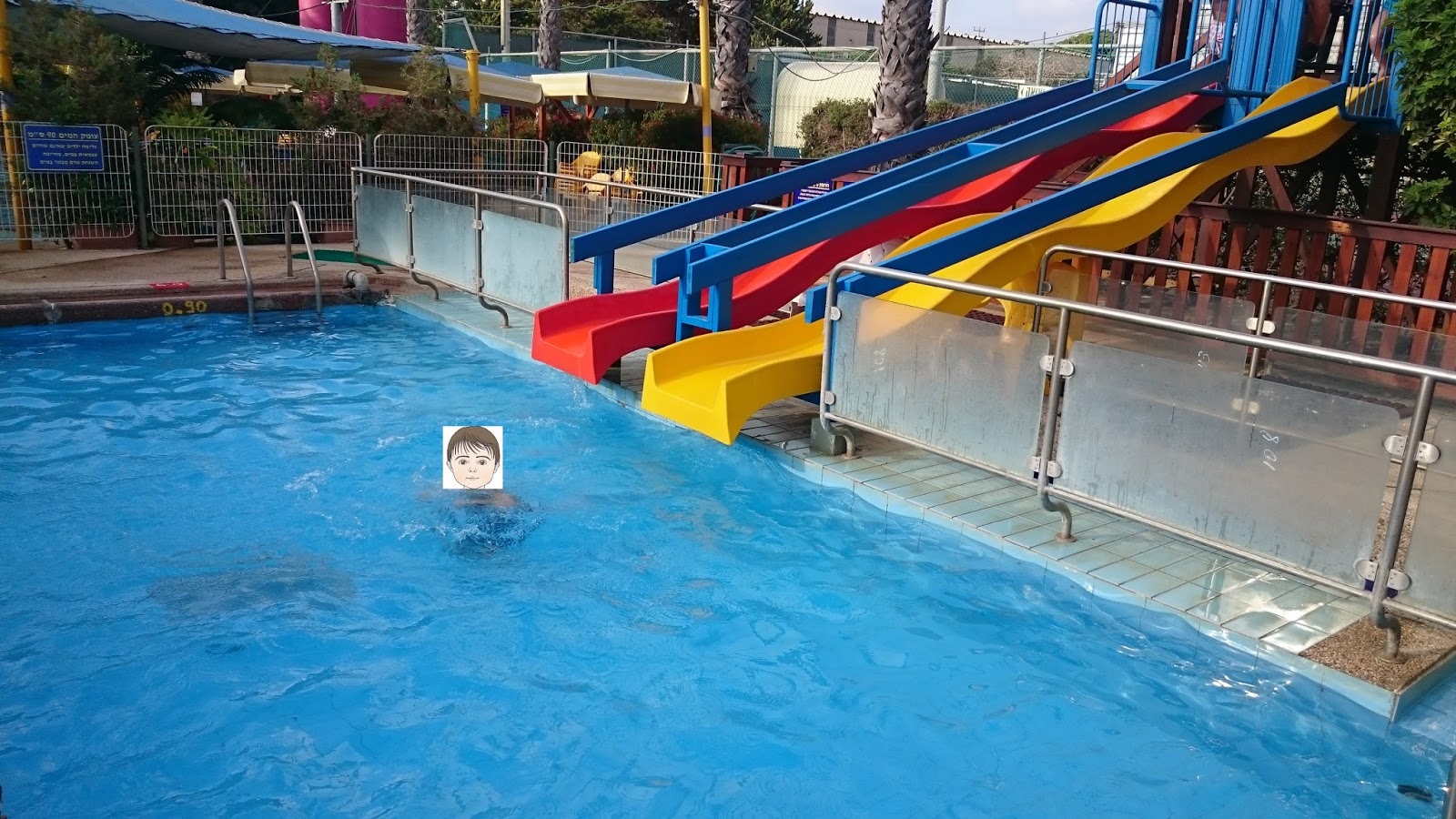 הגענו ומייד לקחתי אותם למלתחות הילדים להחליף לבגדי הים. פתרון גאוני למצבים כאלה, בהם אישה מגיעה עם שני בנים שכבר עברו את גיל 3 ולא ניתן להכניס אותם למלתחת הנשים. יצאנו מייד לכיוון הבריכה הגדולה, הנחנו את התיקים על כסאות הנוח, עזרתי להם להרכיב את המשקפות שלהם ומייד נכנסנו למים.