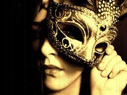 כתר על ראשי כשאני לובשת מסיכה של אש ולהבה .