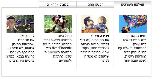 בהזדמנות זאת אני רוצה להודות לצוות של ישרא-בלוג שנותן קרדיט לבלוג חדש כמו שלי, באמת שרגשתם - מבחנתי זה מרגיש שכאשר נפגשים עם דברים שיוצאים מהלב - הם נכנסים ללב. תודה.