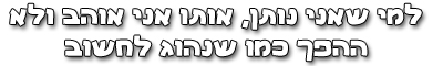 אהבה - פעם אדם חכם אמר שאהבה היא תוצאה של נתינה ולא כמו שנהוג לחשוב ההפך שמי שאני אוהב אותו לו אני נותן. אהבה בהכרח קשורה לנתינה - למי שנעניק (גם בלי לקבל כלום!!!) אותו נאהב (כמו אמא שדואגת לתינוק שלה למרות שכביכול הוא לא מחזיר אהבה במשך כמה שנים טובות).