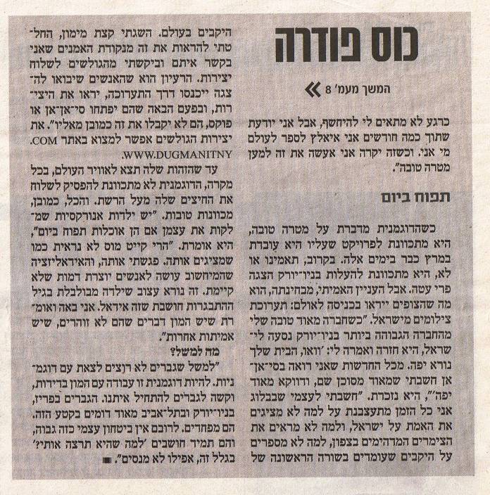 האחריות לתכנים בעמוד זה חלה על דוגמנית ועליה בלבד