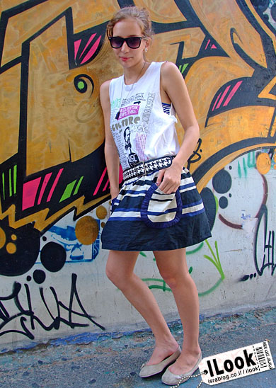 משקפי שמש: XRAY, שרשרת: כלי זמר, חולצה: זארה, חצאית: טופ שופ,חגורה: של אמא, נעליים: פול אנד בר
