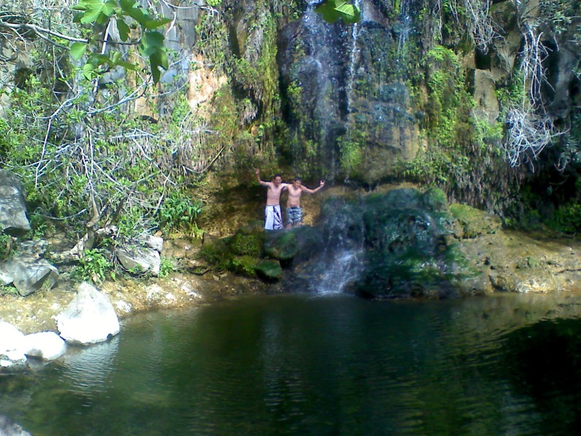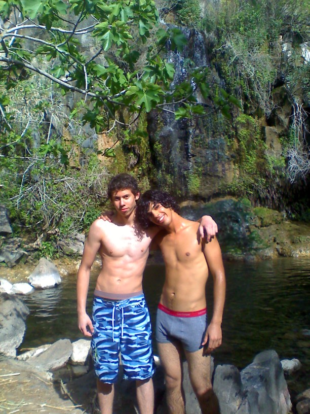 פרידמן במים (ומימין לשמאל) מתחת למפל - אורי אני וניב.