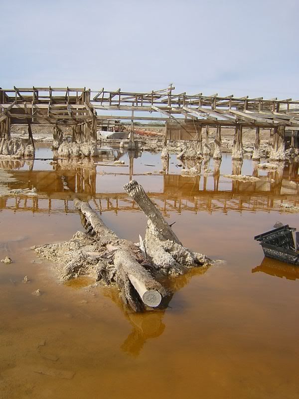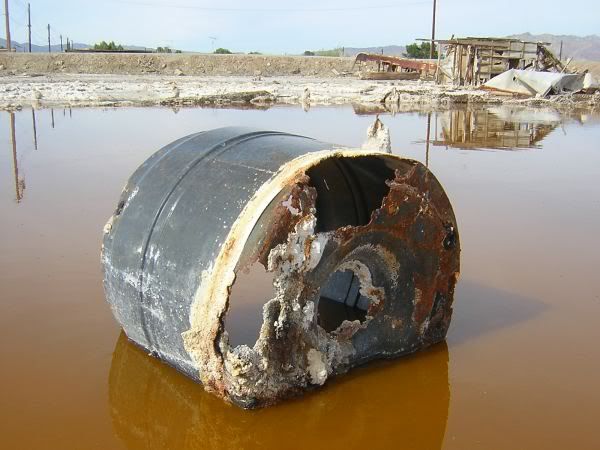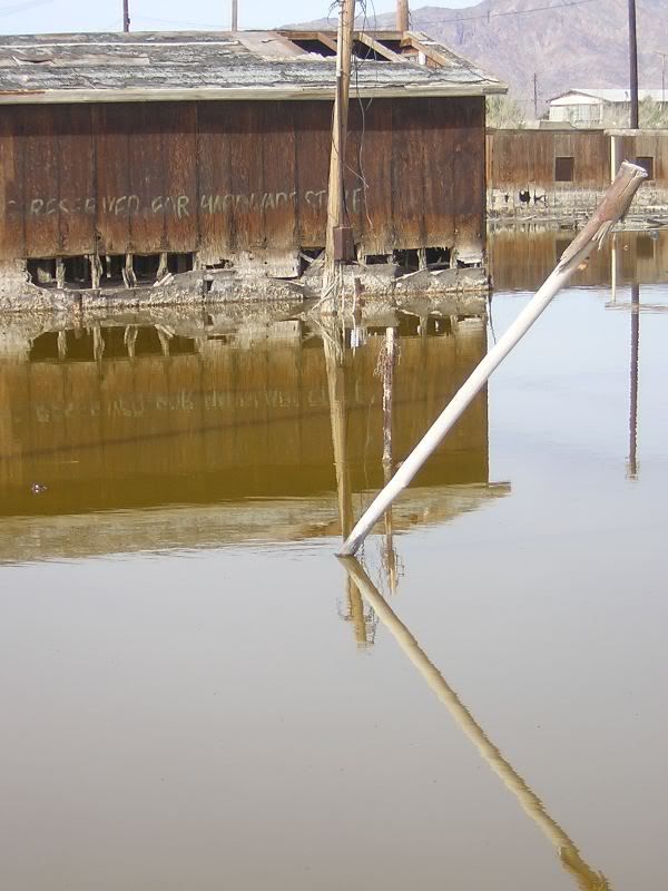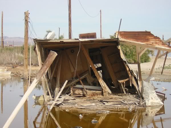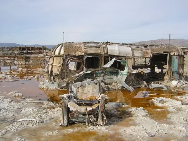 התמונות שלפניכם הגיעו מעיירה זנוחה בשם BOMBAY BEACH, שלחופי SALTON SEA. העיירה מרוחקת 20 דקות מהישוב הקרוב (שהוא גם מוזנח וחצי נטוש). בקיץ החום שם מגיע לרמות שלא יתוארו. כשהיינו בים החלטנו לסוע אליה רק כדי להרגיש שהיינו בבומביי, וכשהגענו מצאנו GHOST TOWN נושמת – ישוב קטן שנראה כמו מעברה: מכוניות ישנות על בלוקים בכל מקום, זבל, צמחייה פראית שכובשת את דרכי העפר (כבישים? בחלום!). הדבר המוזר ביותר היה שהעיירה יושבת ממש על חוף הים אבל לא ניתן לראות את הים ממנה: סוללת עפר גבוהה עמדה בין שורת הקרוואנים-בתים האחרונה ובין הים. בעזרת כוחות הסוס מצאנו דרך לעקוף את המכשול, ונגלה לעינינו מחזה מדהים. במרחק של כמה עשרות מטרים מהים עמדו להם שרידי בתים, קרואנים ושלדות אוטובוסים. כנראה שהים הציף את החלק הזה של העיר באחת השנים הגשומות ותושבי העיר פשוט נטשו את בתיהם. הצונאמי הקטן באמצע המדבר בקליפורניה.