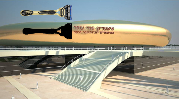 למרבה ההפתעה, ראיתי שבגג האיצטדיון המוזהב - נחשו מה.. חסרה חתיכה הדומה באופן מחשיד לסכין גילוח.
