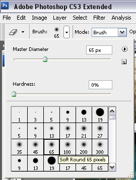 ועכשיו תוכלו למחוק איתו. אבל אתם תראו שלא יוצא הכי יפה. שימו את המחק למעלה ב Flow: על בערך 30%, ותבחרו את המברשת המתאימה למחיקה.