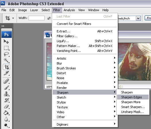 עכשיו, אני רוצה שהתמונות יראו חדות יותר. אני הולכת ל- Filter >> Sharpen >> Sharpen Edges