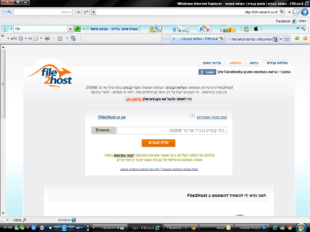כדי לנהל את הקבצים שאתם רוצים להעלות יש להירשם קודם כל לאתר.