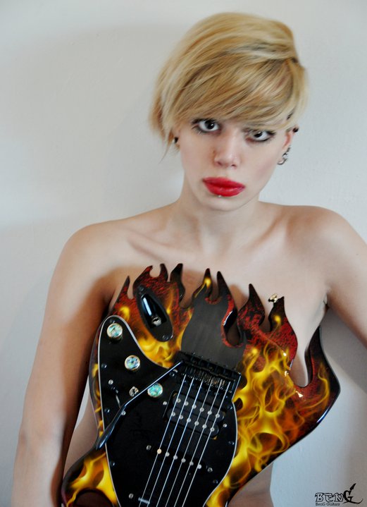 תמונות של כוסית ערומה עם גיטרה חשמלית להבות שלי אז התחלתי לקדם את החברה שלי לבניית גיטרות בצעד נוסף: צילום.