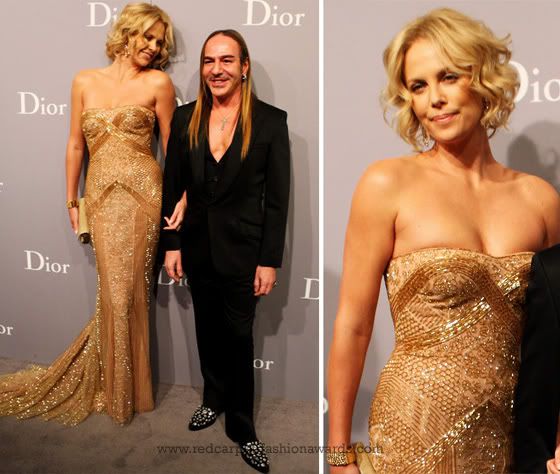 ג'ון גליאנו מעצב הבית של דיור והצמודה שלו לאירוע של דיור(שרליז ת'רון) הגיעו לאירוע יחד ונראו נפלא.