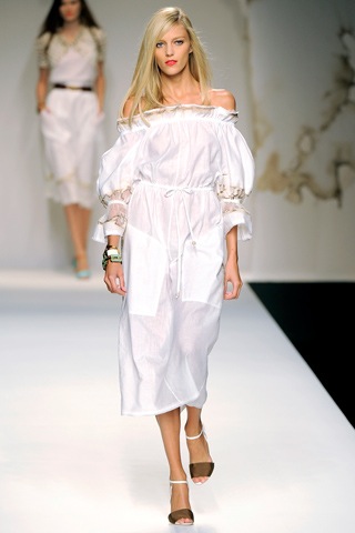 בכל המשך התצוגה הרגשתי כאילו הבדים לתלבושות הם בעצם וילונות ומפות שנילקחו מסלון מהמאה הקודמת.