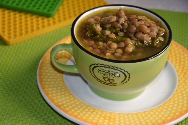 מרק עדשים ותרד בתוספת בצל סגול נענע וכזברה - לימים הקרים